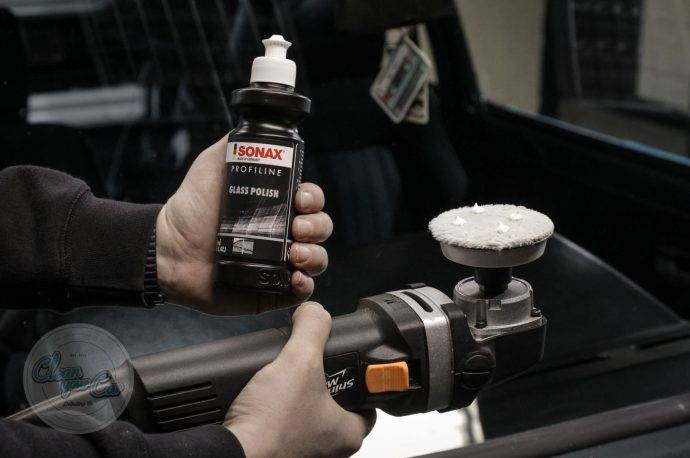 + Chỉnh máy đánh bóng ở tốc độ quay thấp, đánh bóng đều trên kính chắn gió, tạo lực tỳ vừa phải.