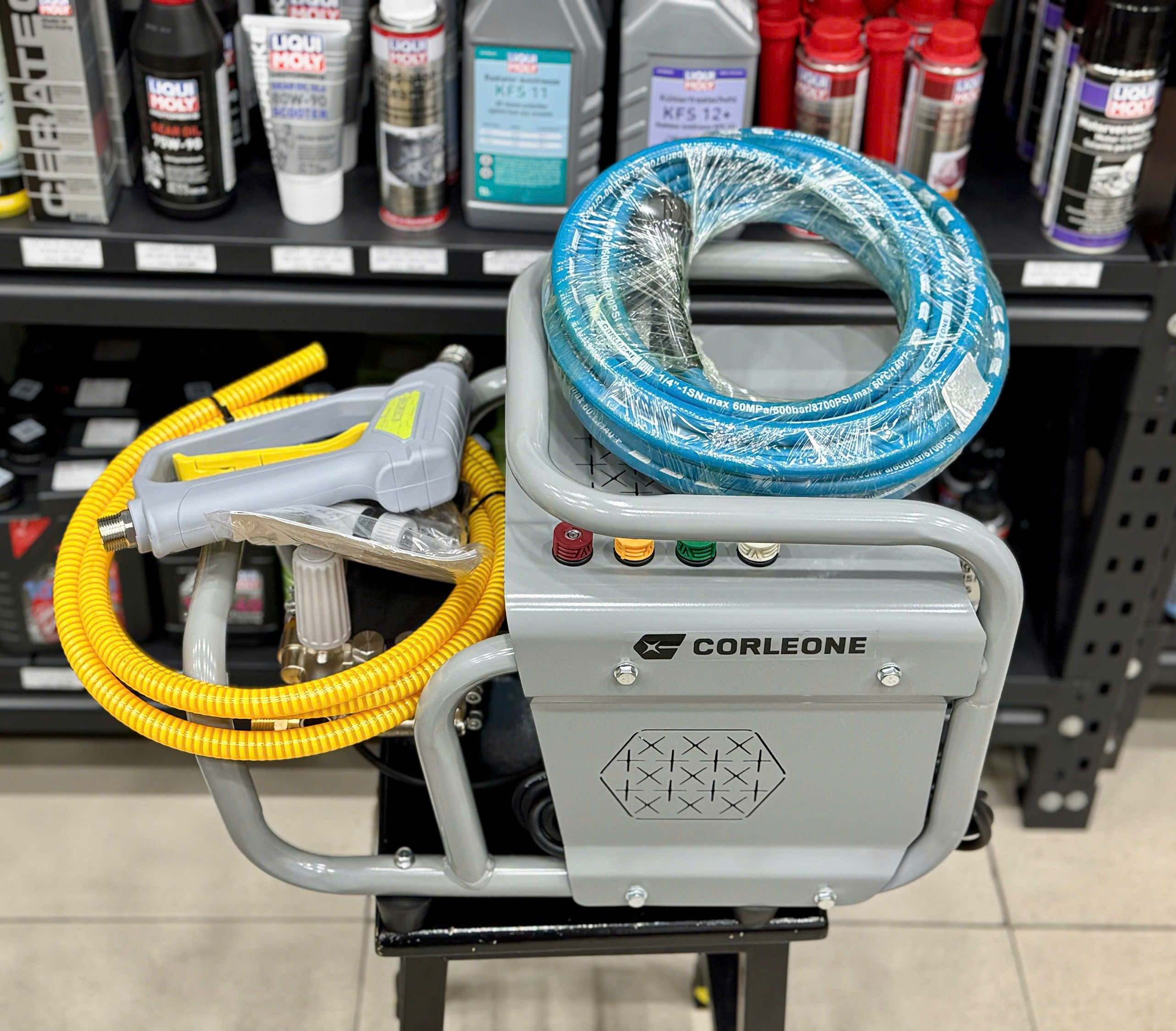 Máy Rửa Xe Gia Đình Áp Lực Corleone KLA G500 120Bar Hàng Nội Địa Trung động cơ cảm ứng từ, đầu bơm trục khuỷ ty sứ áp lực cao gia đình rửa sân vườn, rong rêu, chỉnh áp rửa máy lạnh, may rua xe áp lực cao chống nước, máy xịt rửa xe áp lực cao ,dây cao áp dài 10m, dễ dàng sử dụng.