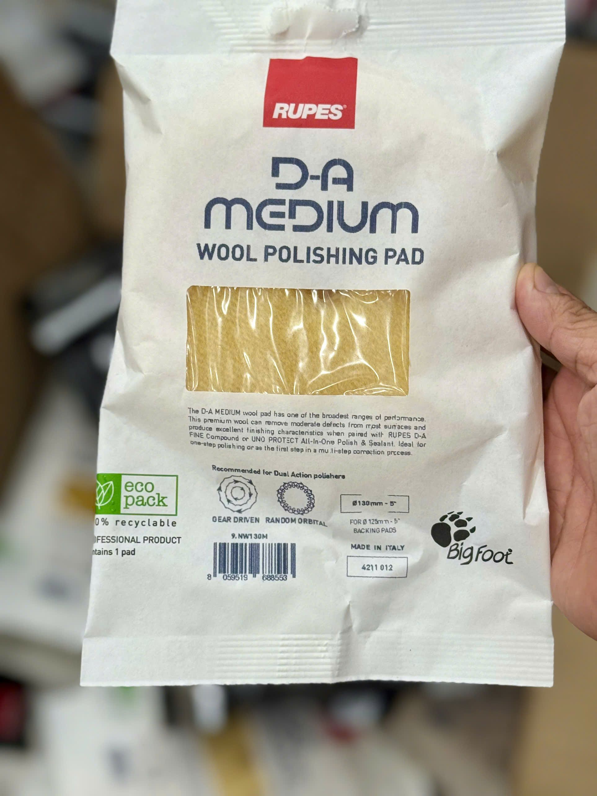 - Môi trường miếng len RUPES được làm từ 100% sợi tự nhiên, được gắn vào một lớp xốp mềm để đảm bảo đánh bóng thoải mái và an toàn và các đường viền của màu dễ kiểm soát hơn.