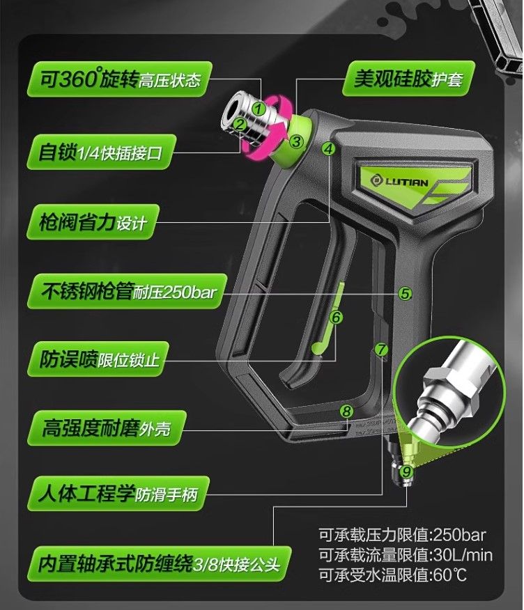 Súng Phun Rửa Xe Chịu Áp Lực Cao 250 - 400 Bar Đến Từ LUTIAN G19 Thế Hệ Mới Đầu Vào 3/8