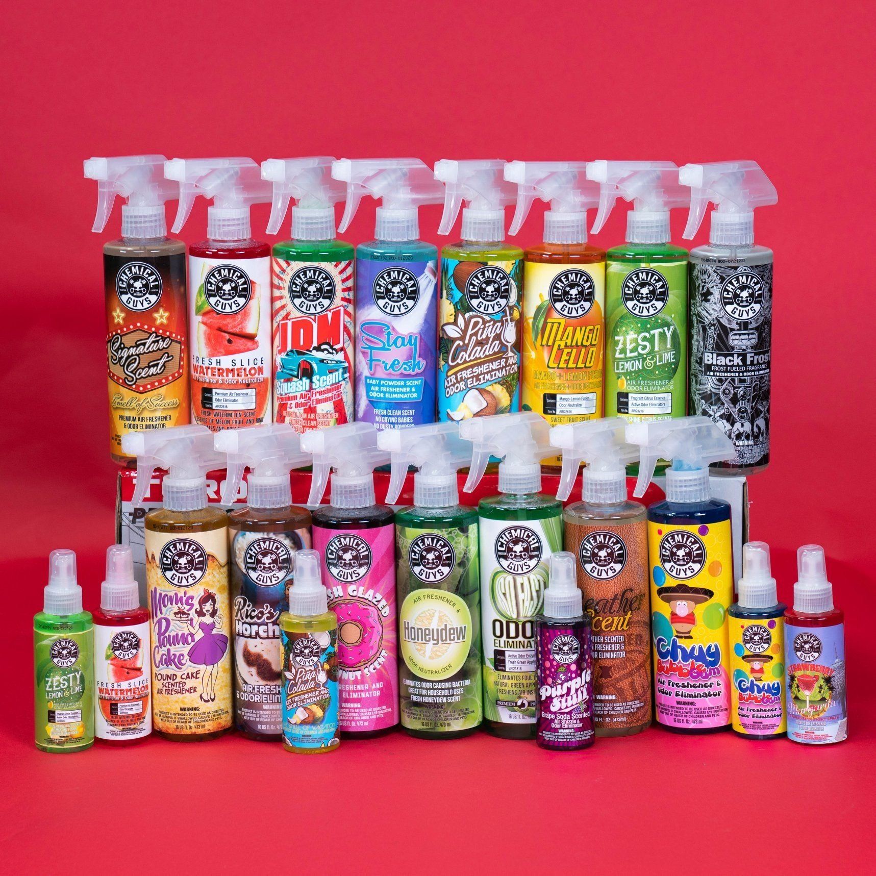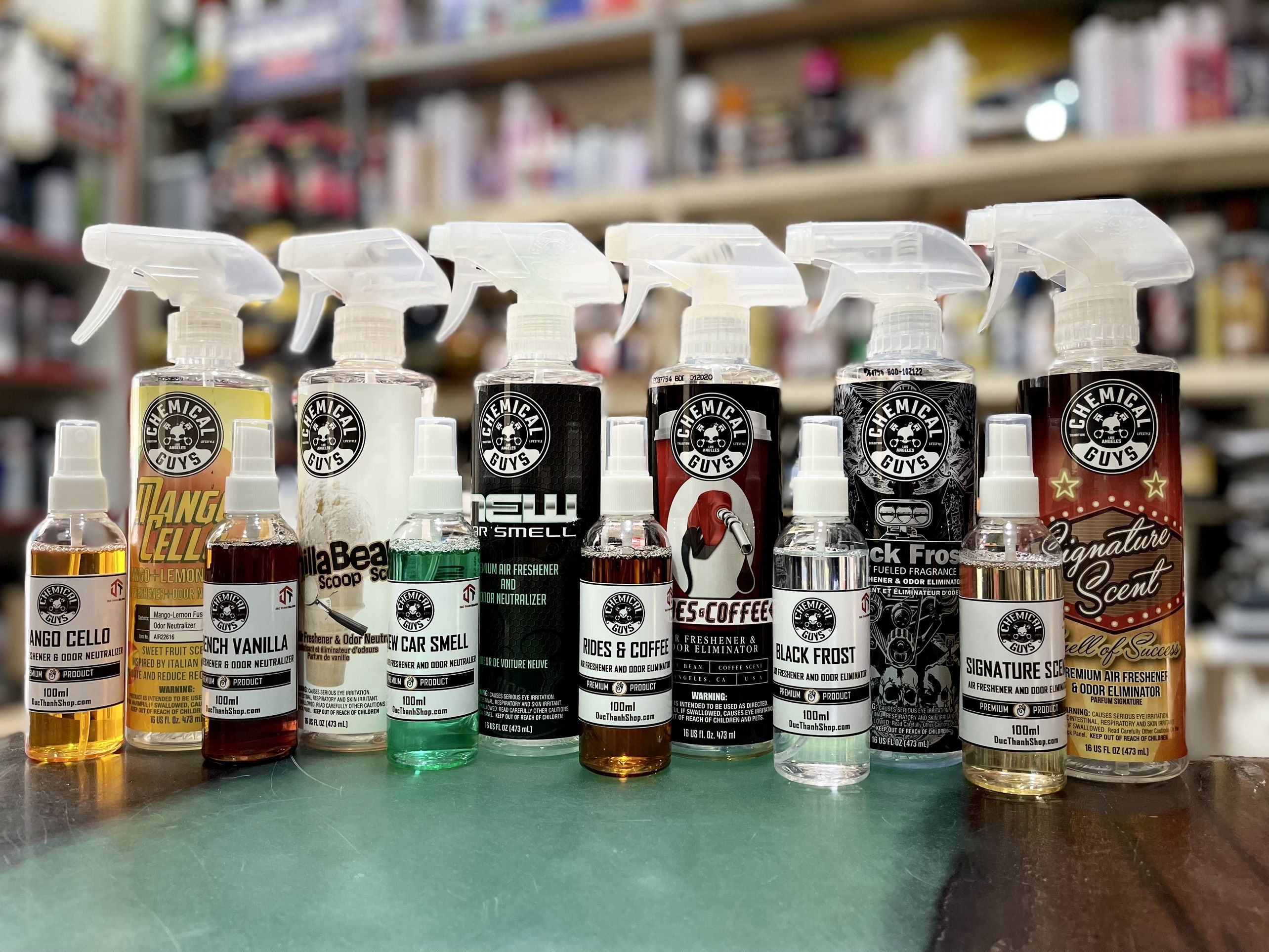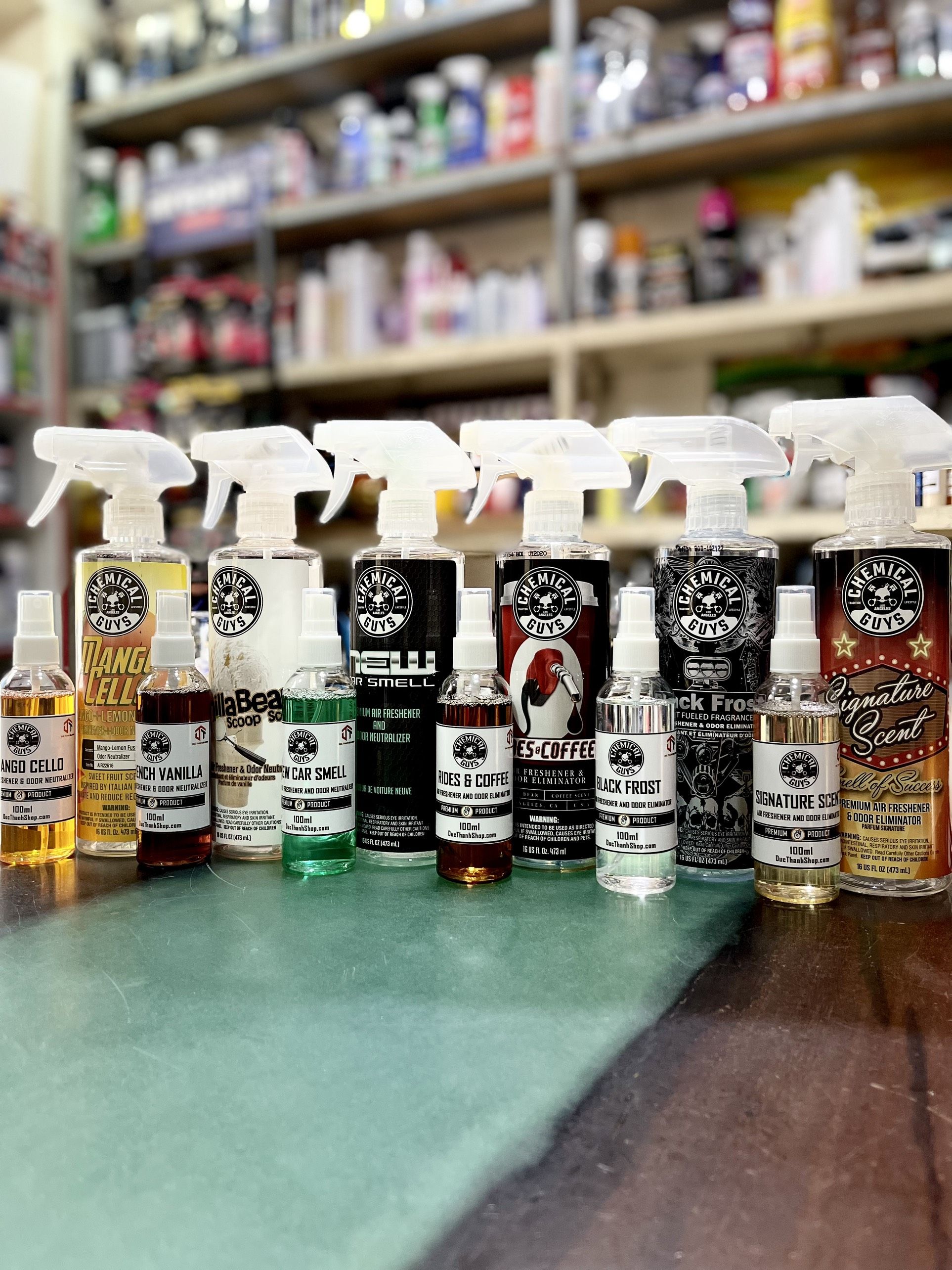 - Có nhiều mùi hương cho khách hàng lựa chọn: nam tính, nữ tính, xe mới, xoài, chanh sả, dứa dừa, vani, táo, donut
