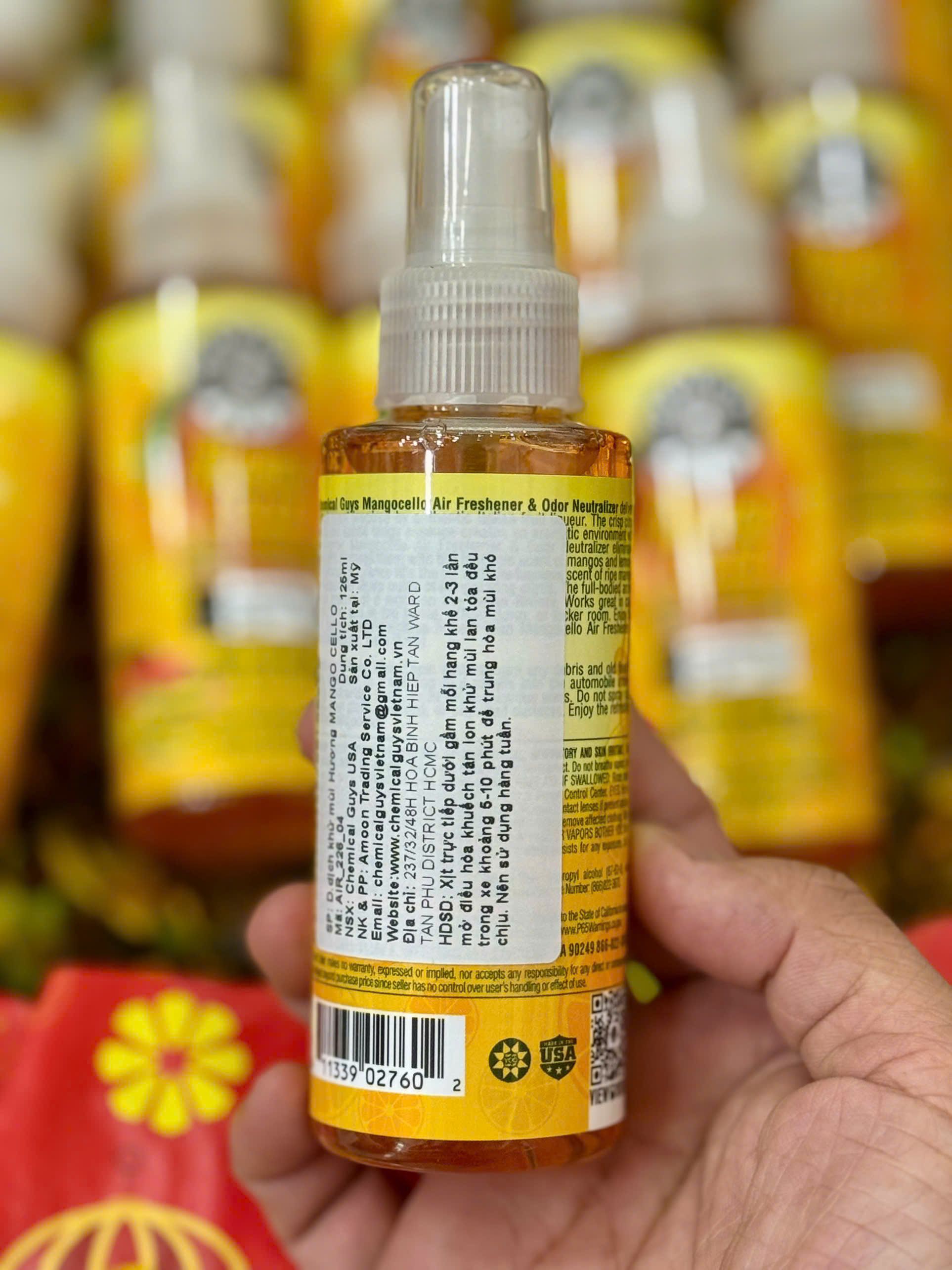 XỊT KHỬ MÙI HƯƠNG TRÁI CÂY XOÀI CHEMICAL GUYS MANGO CELLO - PREMIUM AIR FRESHENER AND ODOR CHAI NHỎ 4oz 118ML